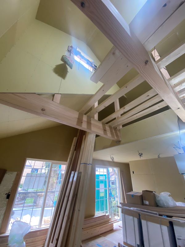 また屋根の勾配をそのまま天井に仕上げることが出来るので縦に広がりのある空間を造ることが出来ます。