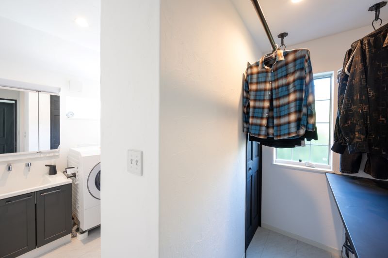 洗濯物を干すだけでなく、用途に合わせて様々な使い方ができるフレキシブな空間です