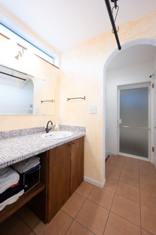 洗面スペースの横に設けた家事スペース