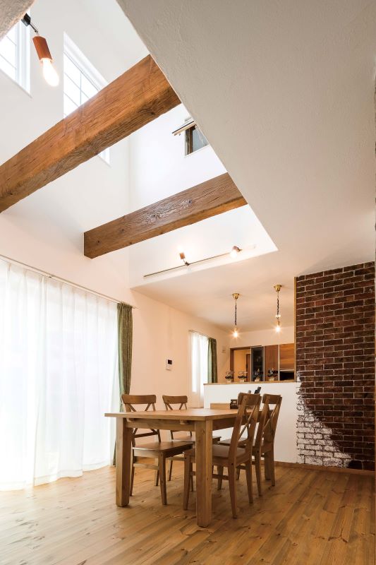 ・エイジング加工を施した見せ梁の天井