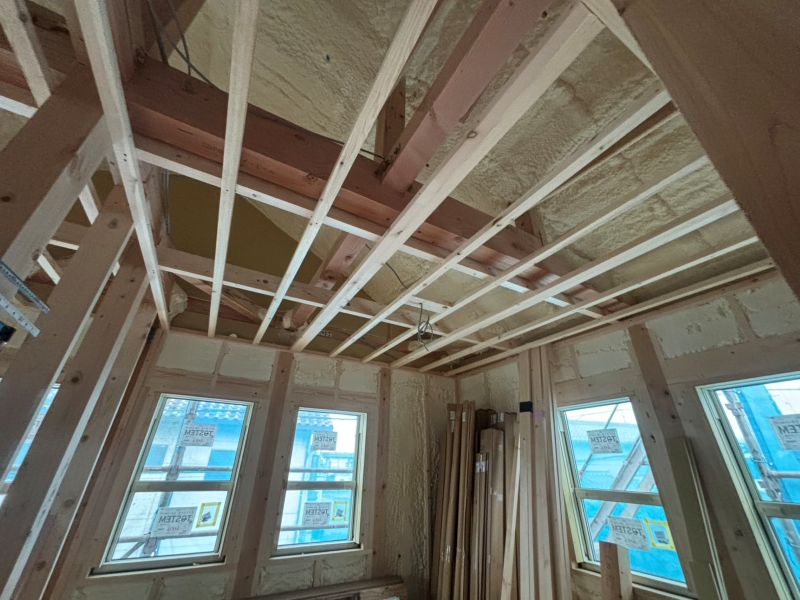 ライフステージでは、現場で吹き付け施工を行う断熱工事を採用しています