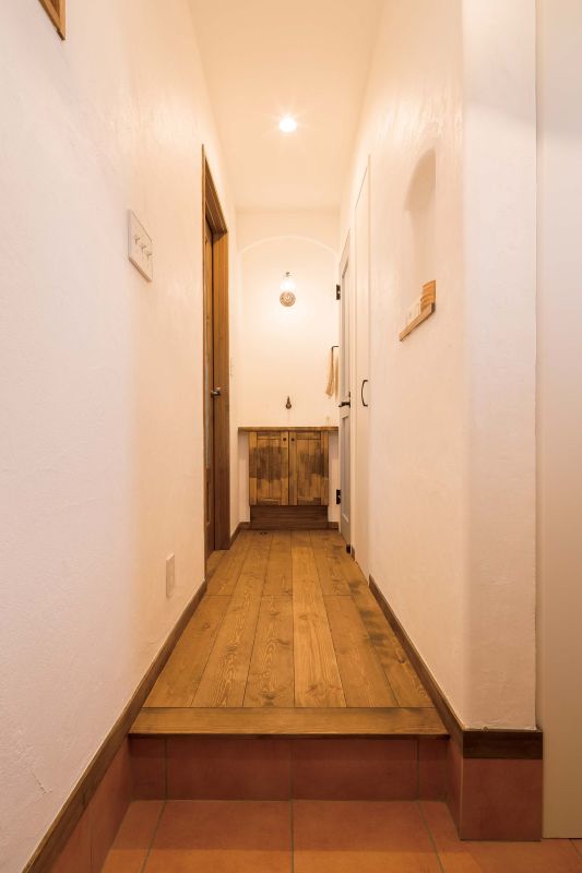 木のあたたかみを活かした玄関手洗いスペースで、居心地のよい雰囲気を演出しています