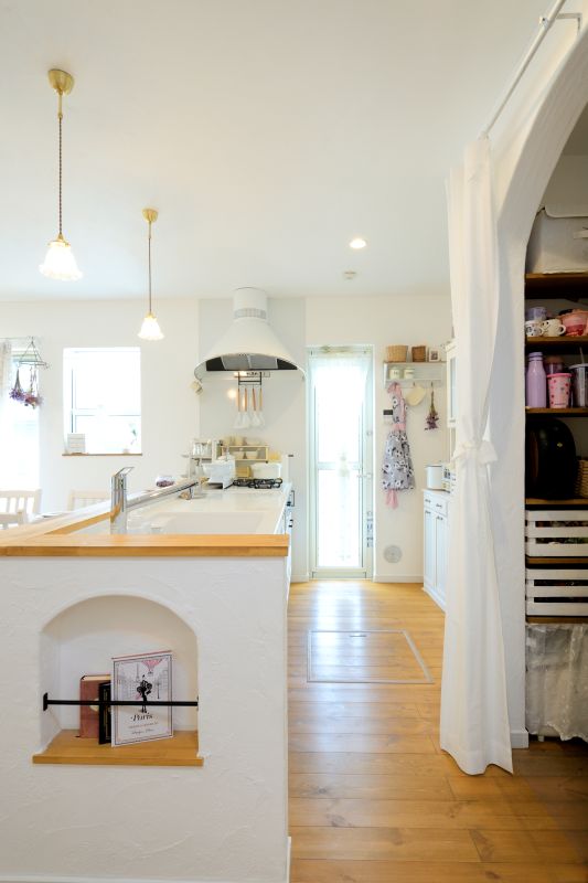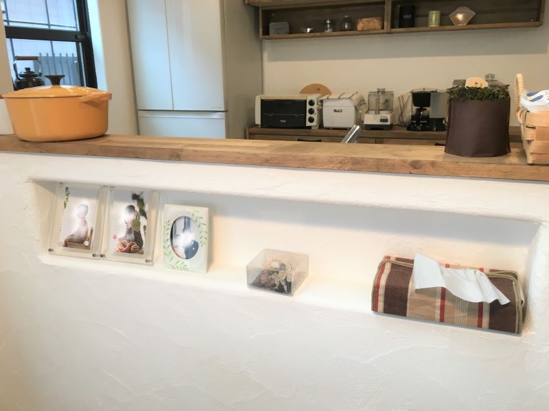キッチンカウンターのニッチは、収納として使うだけでなく、