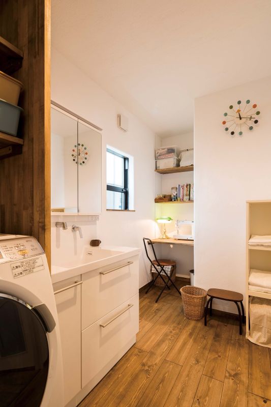 洗濯動線に組み込んだカウンターデスク