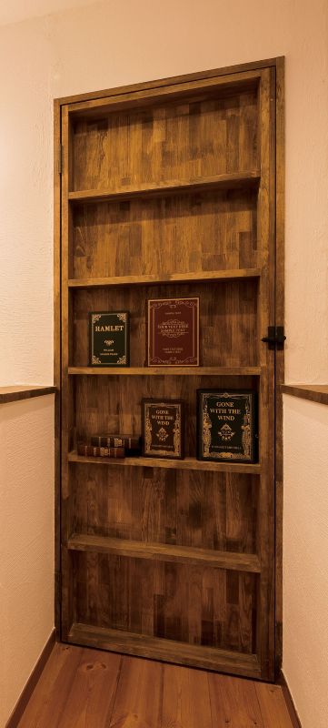 本棚に見える造作扉が2か所あり、扉を開けるとまるで秘密の部屋に入るような感覚に。