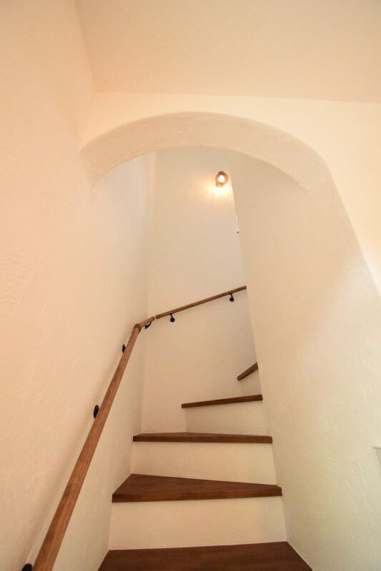 やわらかな曲線が空間のアクセントになりながら、リビングと階段をゆるやかに仕切ってくれます